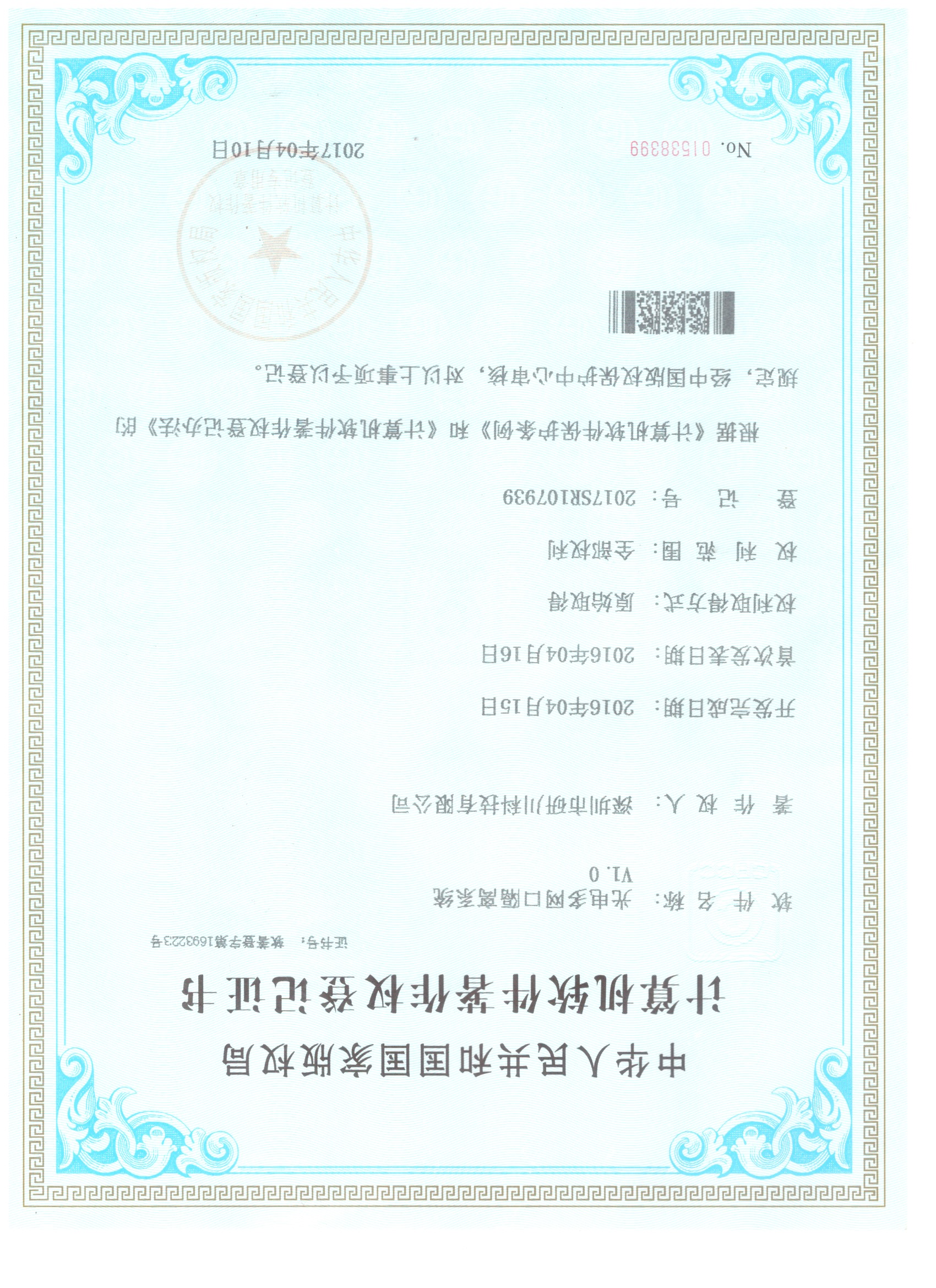 上一篇:计算机软件著作权登记证书12