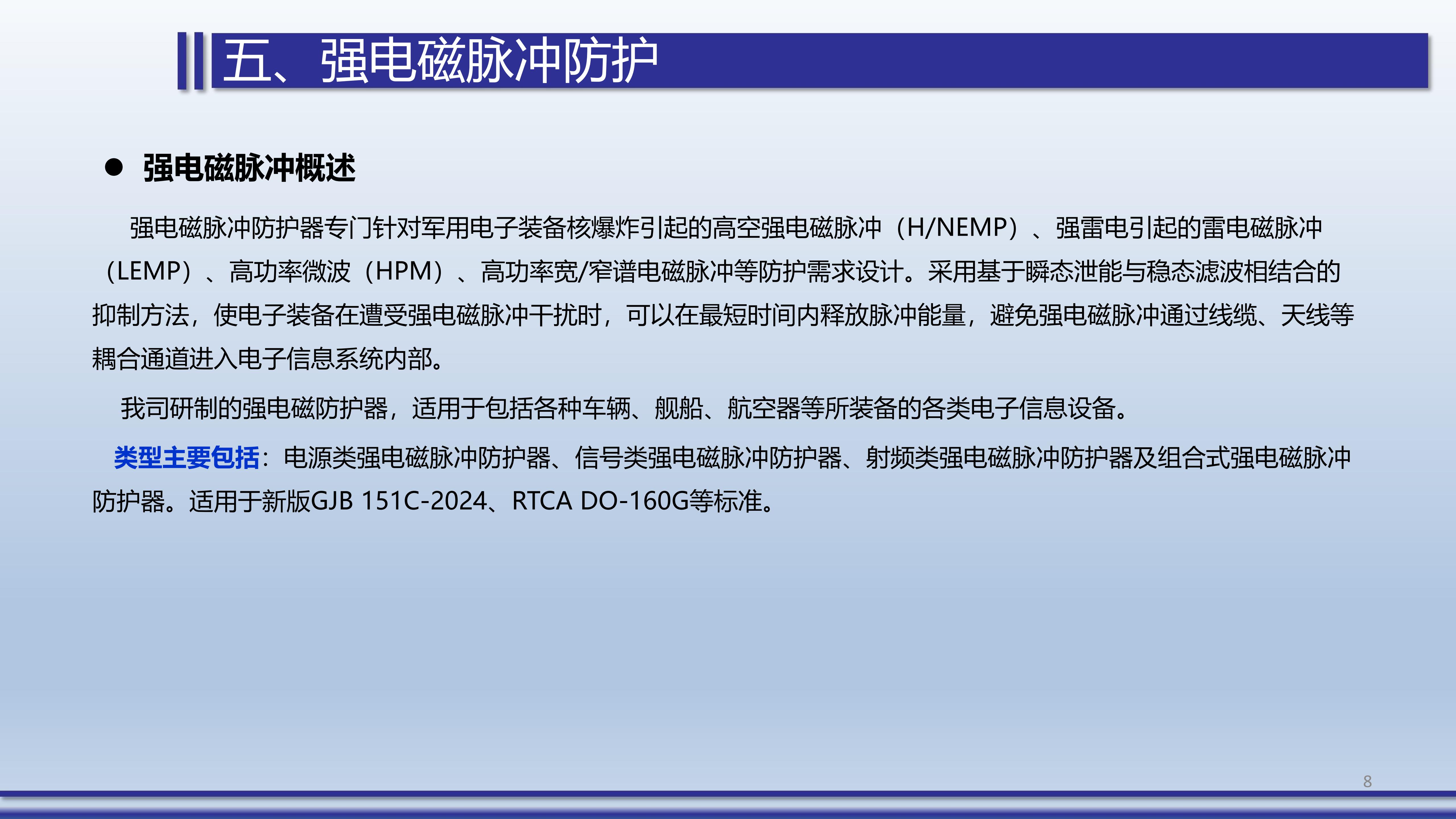 电磁脉冲防护不再是冷战时期的专属概念,随着电子设备集成度的提高(工作电压更低,对过压更敏感),其应用场景已渗透至电力、通信及新兴的无人智能系统。对于电子信息专业的工程人员而言,理解并应用MIL-STD-188-125中的“屏蔽+滤波+接地”三位一体设计理念,是设计高可靠性系统的基本功。