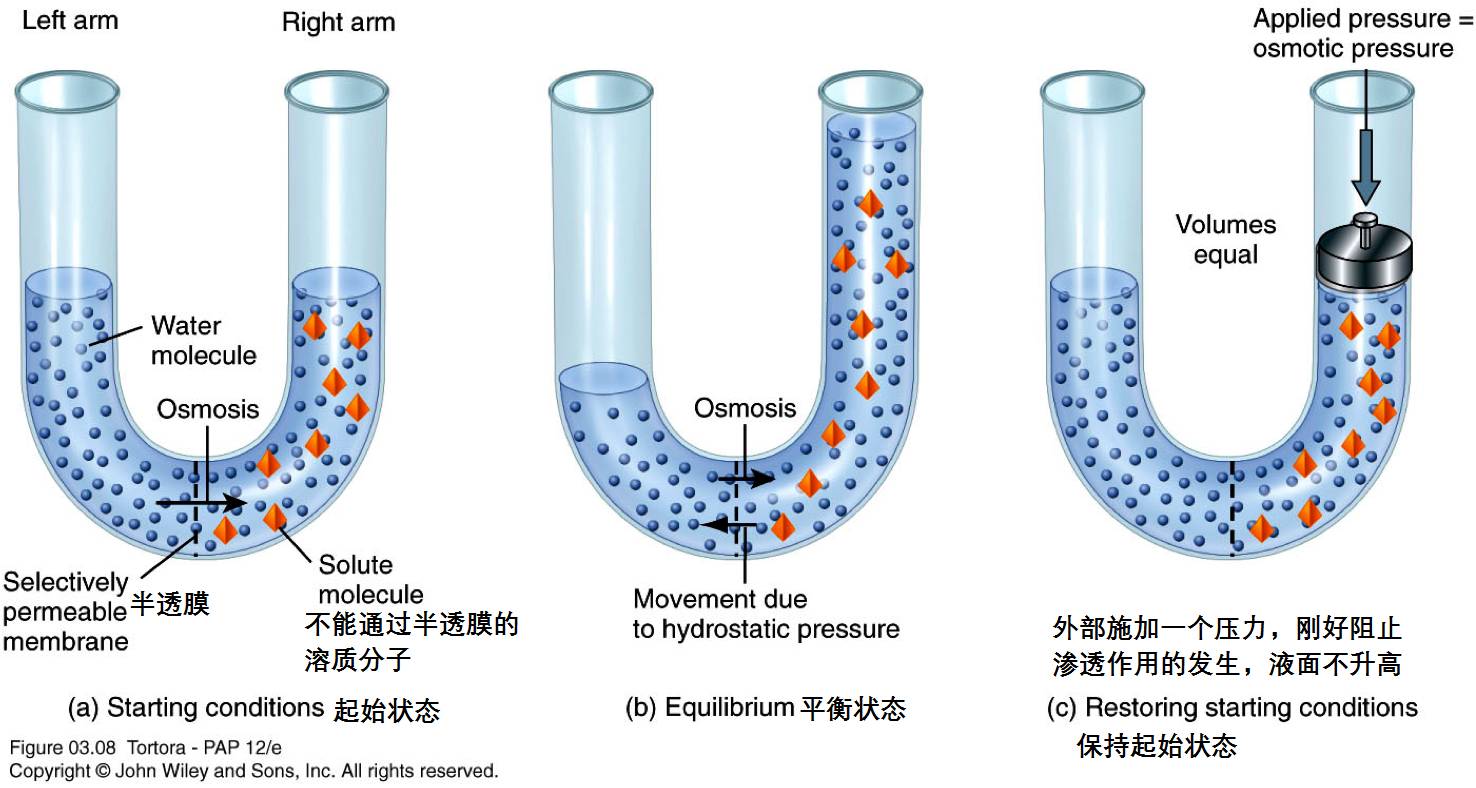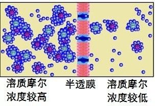 水分子可自由通过半透膜。不能通过半透膜的溶质颗粒是极性亲水的,溶液中溶质微粒对水分子具有吸引力。